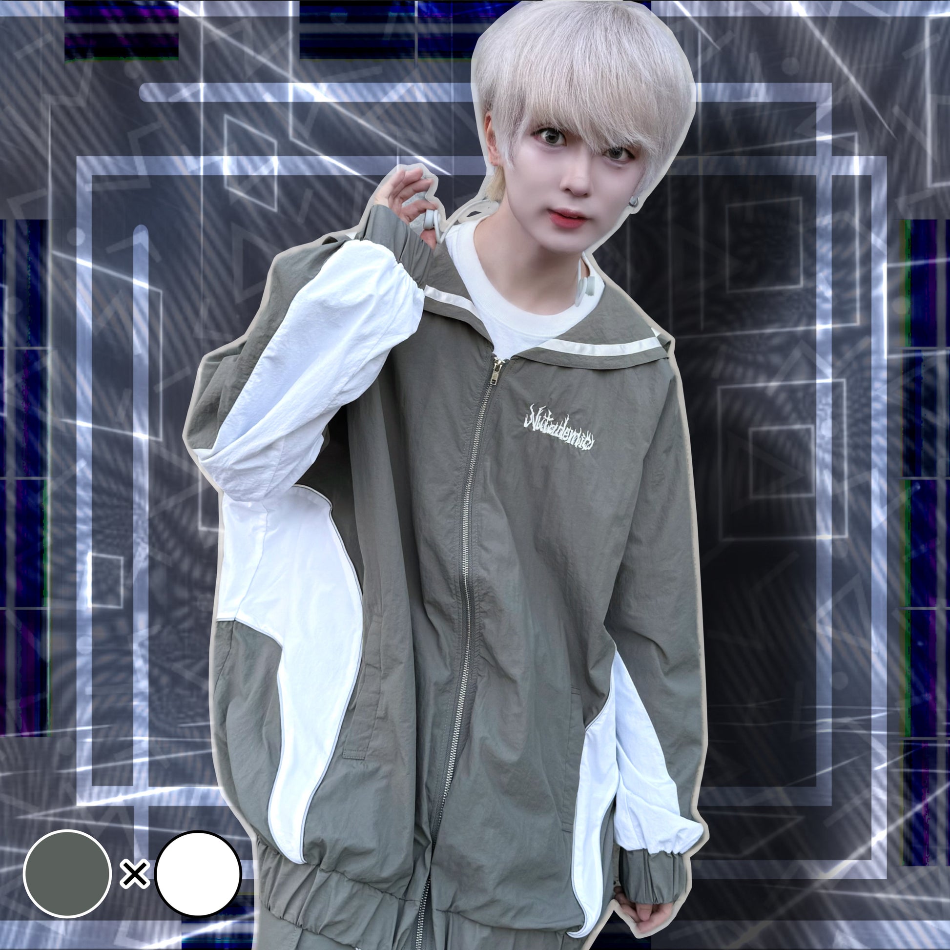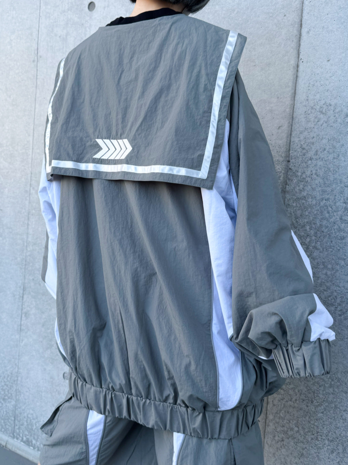 シャカった社会で無敵おジャージ(カーキグレー×白)